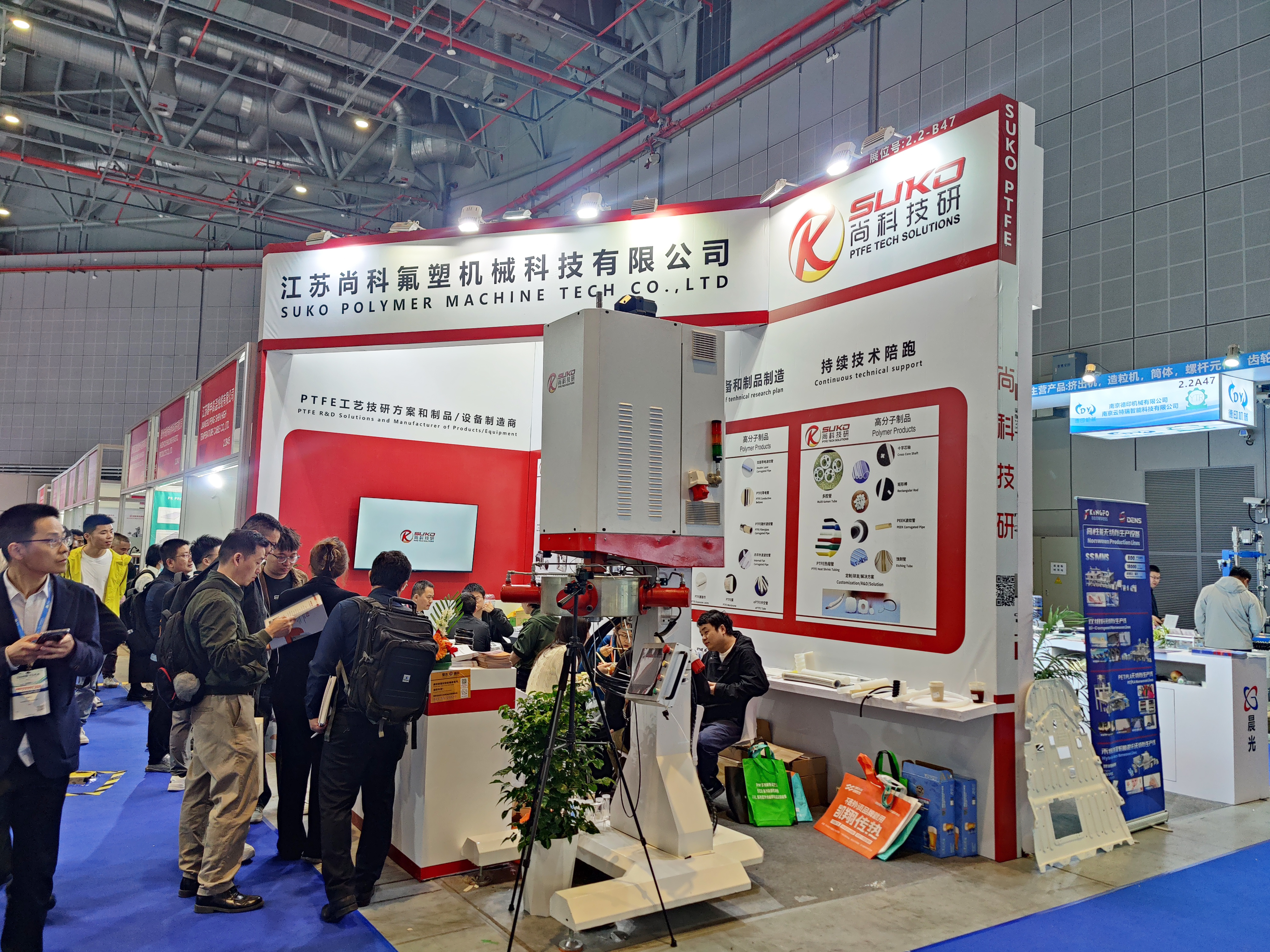 At the booth of SUKO POLYMER MACHINE TECH CO., LTD., we are showcasing a wide range of PTFE products and machinery, including PTFE rods, sheets, tubes, as well as extrusion and molding machines. We are glad to see strong interest and have had many valuable conversations with customers and partners.